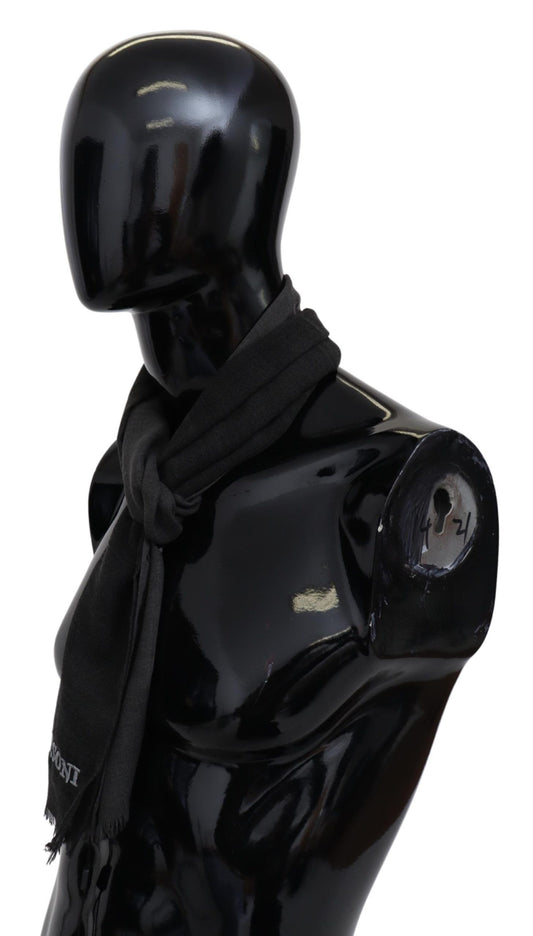 Black 100% Wool Unisex Neck Wrap Fringes Scarf